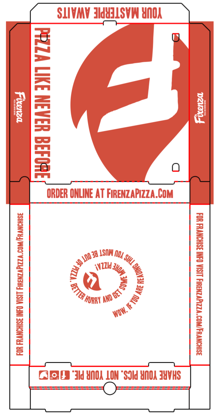 Firenza Pizza is a rapidly growing, fast-casual pizza franchise concept based in Virginia with units opening all across the United States. From 2015 to 2018 we handled all Brand Management, Creative Direction and Graphic Design under Firenza Pizza’s Vice President of Marketing. Responsible for all packaging, menu designs, national promotions and marketing campaigns including the printing, distribution and implementation of all collateral. Our marketing frameworks were utilized in all new store designs and grand opening promotions. Each national campaign was designed to boost customer frequency and drive average ticket sales and overall AUV.